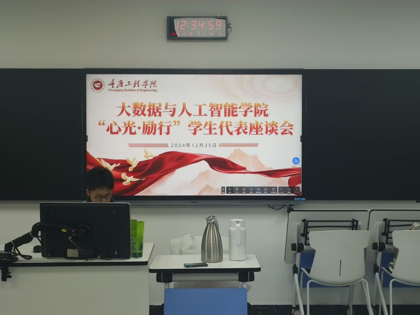 本网讯(文/图 大数据与人工智能学院 杨青松 汤越)为了加强与家庭经济困难学生之间的联系与交流,12月25日,大数据与人工智能学院于7206举办了“心光·砺行”主题座谈会。学院40余名家庭经济困难学生参会。