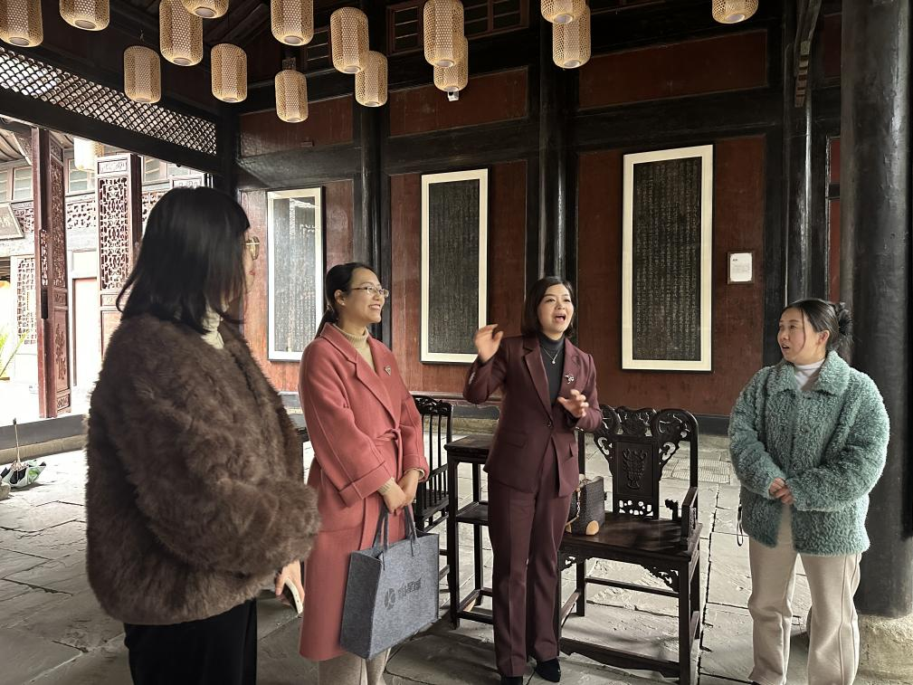 本网讯(图/罗磊 文/孔旎)为进一步提升大学生党员同心宣讲团成员的解说水平,更好地承担吴藻溪生平事迹陈列馆、彭氏民居讲解工作,于2025年3月5日14:30,在彭氏民居进行了专项培训。会议由九三学社重庆市巴南区工委专职副主委姚小娟主持,管理学院刘丽娟老师、新媒体学院杨明慧老师、大数据学院刘雪梅老师以及8名宣讲团成员参与了本次培训。
