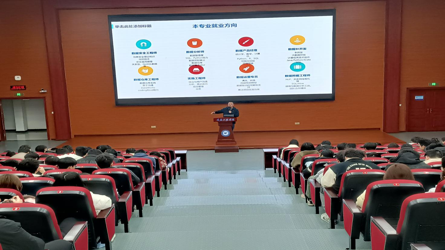 本网讯(文/图 敬夫)为帮助我院学生了解就业渠道,明确未来个人发展方向。2025年3月16日,大数据与人工智能学院在7807报告厅开展“适合自己的最优解—就业渠道详解”专题讲座。本次讲座由学院就业科敬夫老师主讲,我院全体大三学生参会。