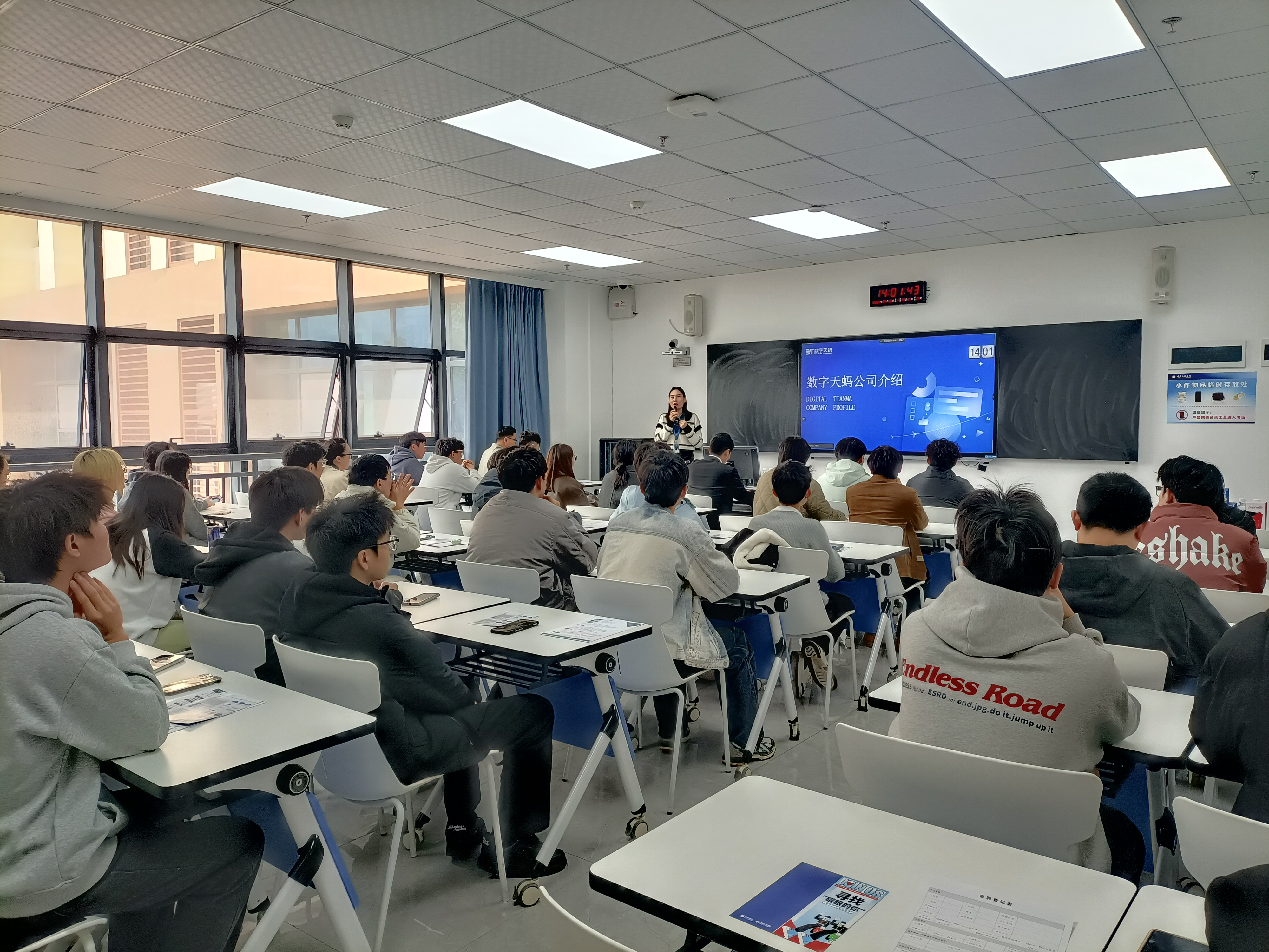 本网讯(文/图 大数据与人工智能学院 敬夫)2025年3月20日,数字天蚂(重庆)信息技术有限公司到大数据与人工智能学院开展专场招聘会,公司人力资源部门总监楚唐、业务部门总监悦川、信贷审核部总监亦梨到现场进行宣讲。本次招聘线上线下同步进行,吸引大数据、管理、电子等学院100余名同学线上线下参会。