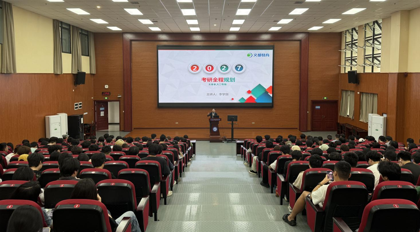 本网讯(文/图 敬夫)为助力我院学生明晰考研方向、科学规划备考路径。2025年4月28日,大数据与人工智能学院特邀文都考研大区校长李学剑老师在7807举为我院23级全体同学带来考研全程规划讲座。我院23级270余名同学参会。