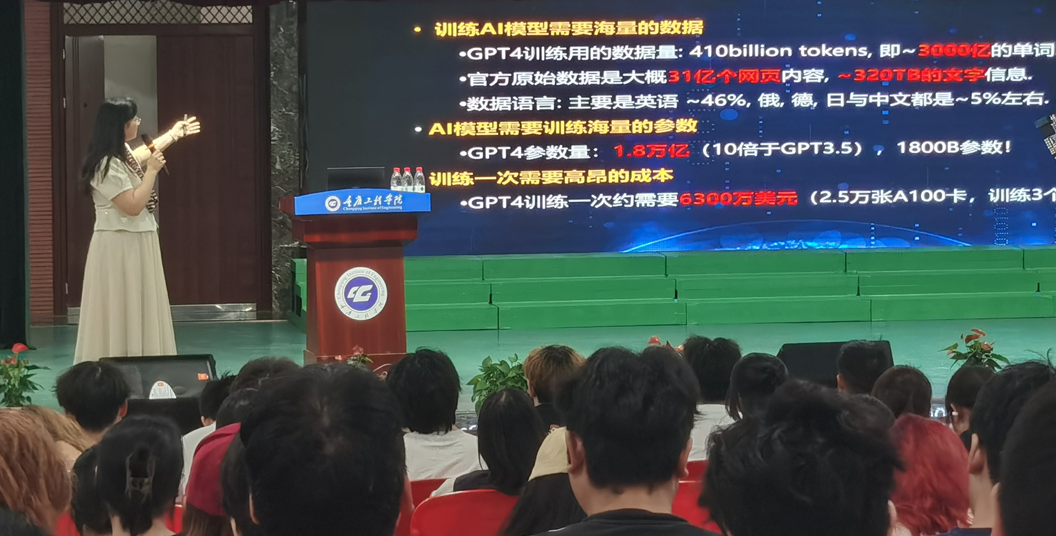 在讲座的最后部分,陈主任针对学生在AI时代面临的挑战和机遇,提出了一系列具有针对性的建议。她建议学生要主动提升数字素养,积极学习AI工具的使用方法,将AI技术融入到日常学习和研究中,以增强自身的竞争力。