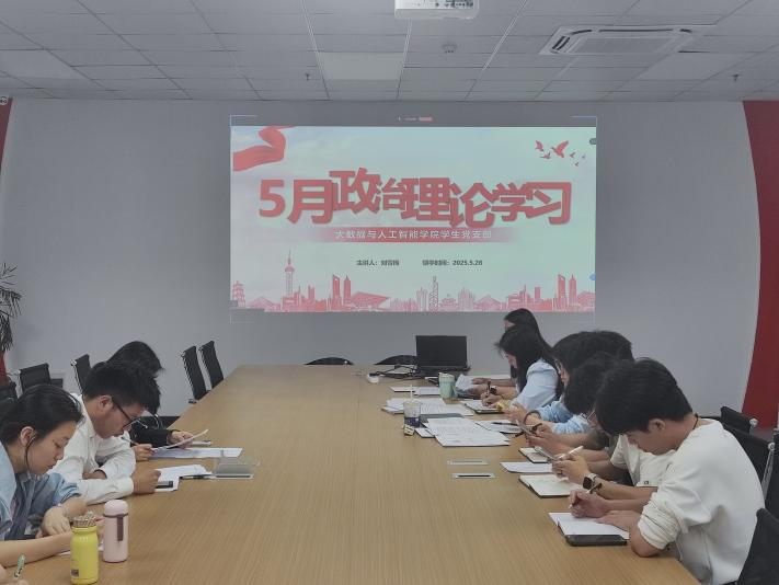 本网讯(文/图 大数据与人工智能学院 胡漫)为提升学生党员政治素养和国际视野,大数据与人工智能学院数据科学与智能科学学生党支部于2025年5月28日在7205召开5月政治理论学习。会议由学生党支部书记刘雪梅主持,学生支部全体党员参与。