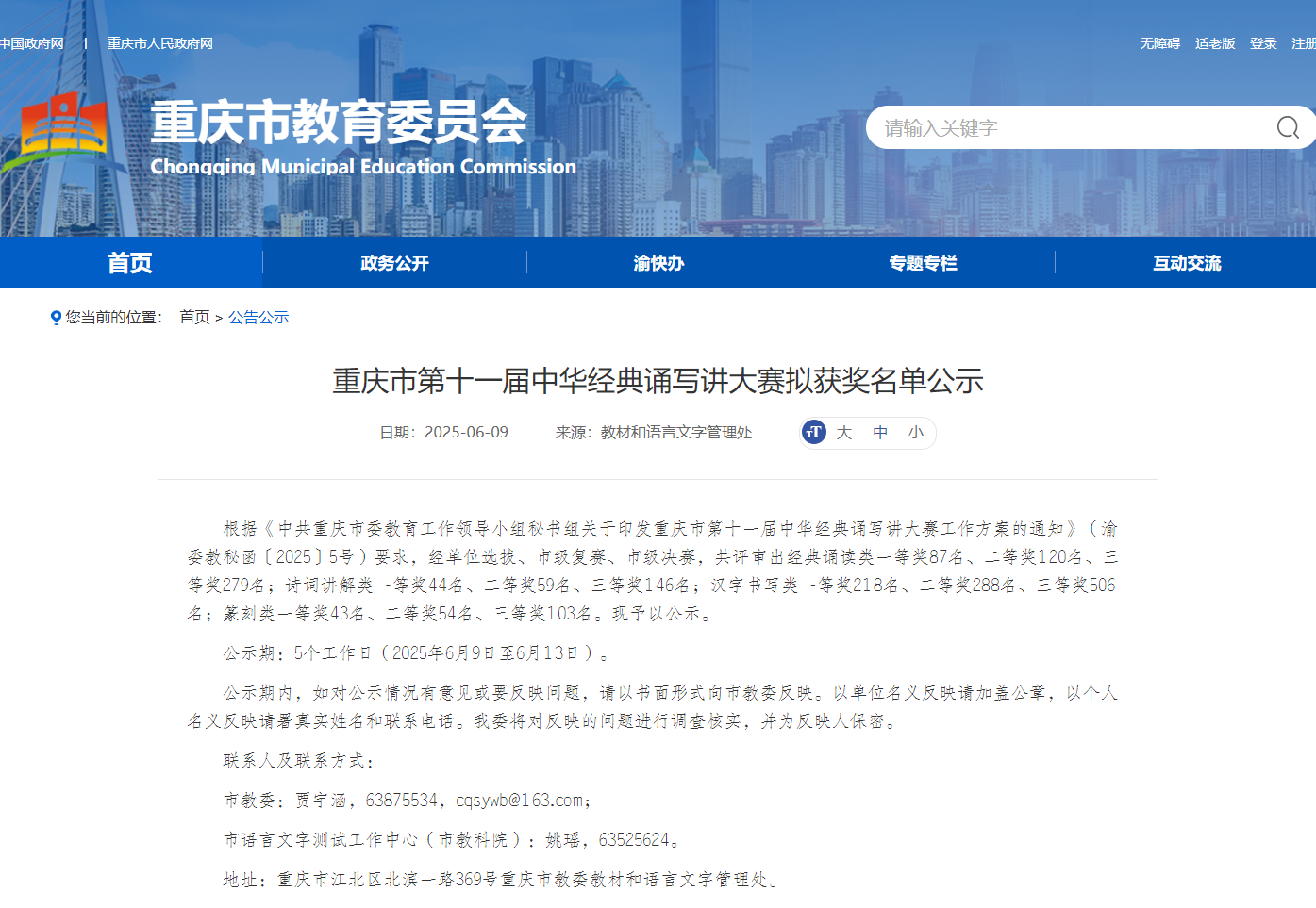 本次大赛由重庆市教育委员会、重庆市语言文字工作委员会主办,旨在传承和弘扬中华优秀传统文化,提高学生的语言文字应用能力和文化素养。大赛吸引了众多高校和中小学的优秀选手参赛,竞争十分激烈。胡漫同学在备赛过程中,与团队默契配合,深入钻研诗词内涵,反复打磨讲解内容和表达方式。在比赛现场,他凭借对诗词的深刻理解、生动形象的讲解以及自信大方的台风,赢得了评委们的一致好评,最终斩获一等奖。