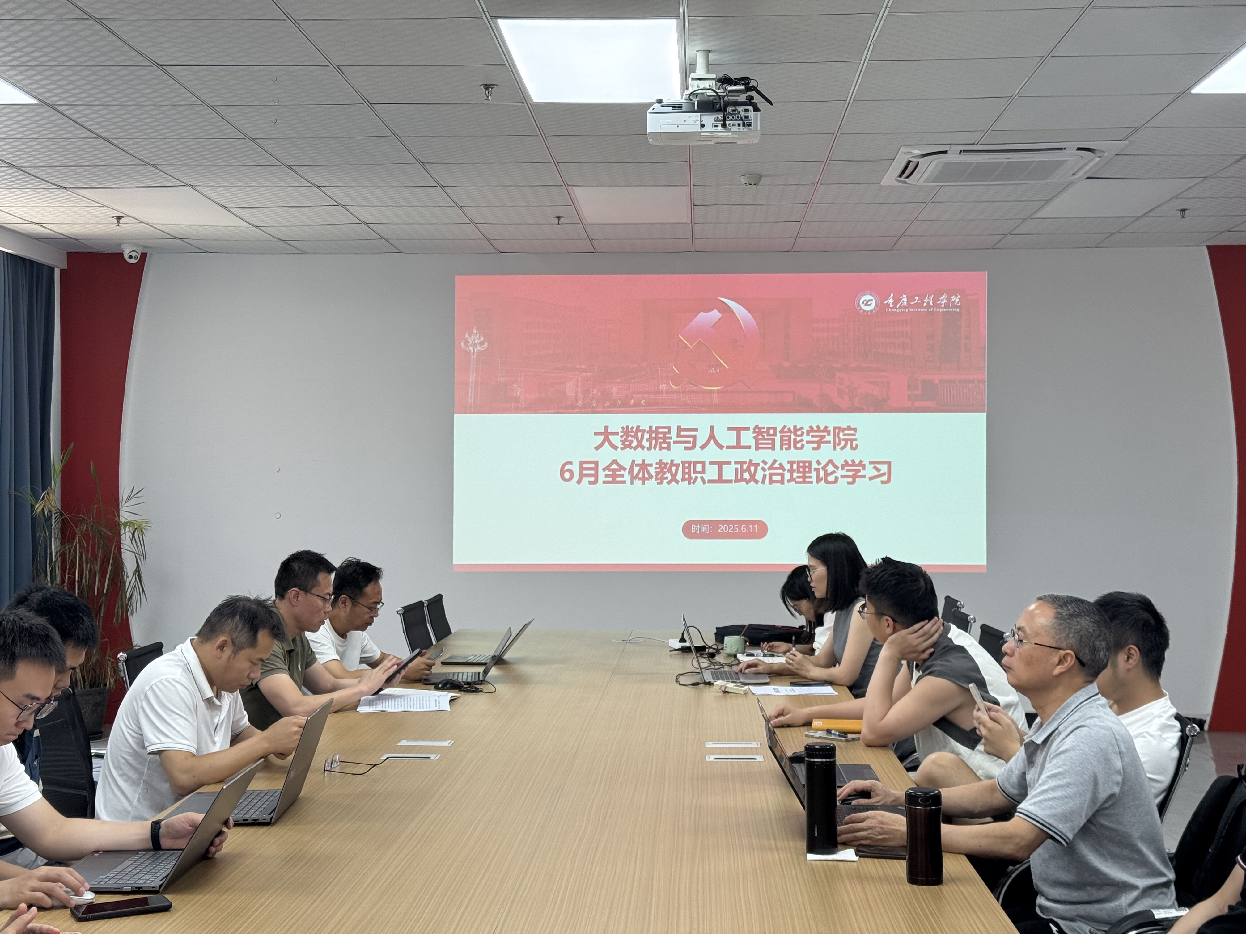 本网讯(文/图 大数据与人工智能学院 杨孟凡)为深入学习贯彻党的二十大精神,全面提升学院教职工政治理论素养,以思想引领推动学院各项事业高质量发展,6月18日下午14:00,大数据与人工智能学院在党政会议室(7205)成功开展了全体教职工政治理论学习会议。学院全体教职工积极响应,准时参会。