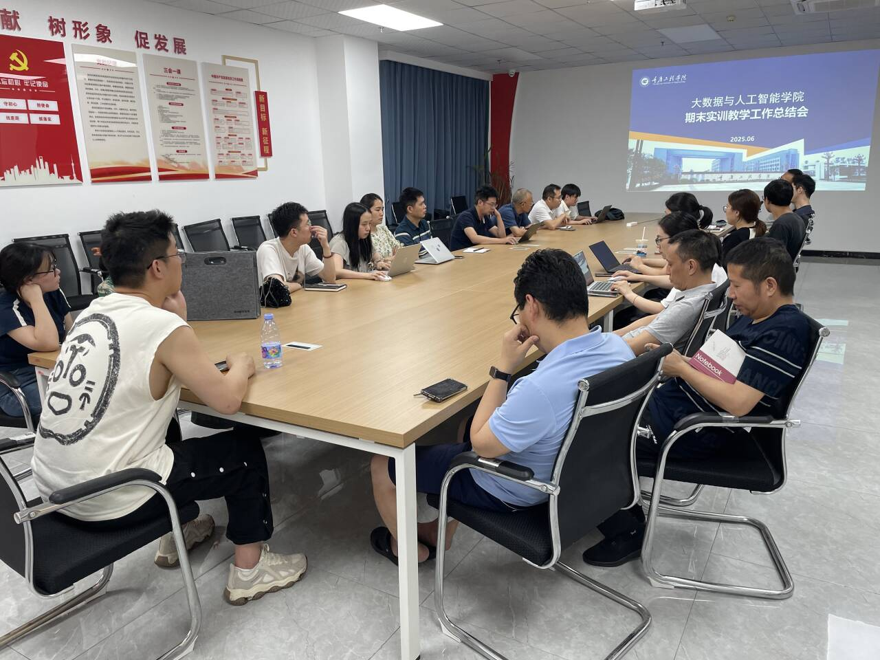 本网讯(文/图 大数据与人工智能学院 傅沙沙)为深入推进产教融合工作,加强实训课程建设,大数据与人工智能学院于2025年6月19日13:00-14:00时在7205开展了实训课程教师座谈会。本次会议由院长助理周勇主持,学院各实训课程课程负责人及任课教师出席会议。