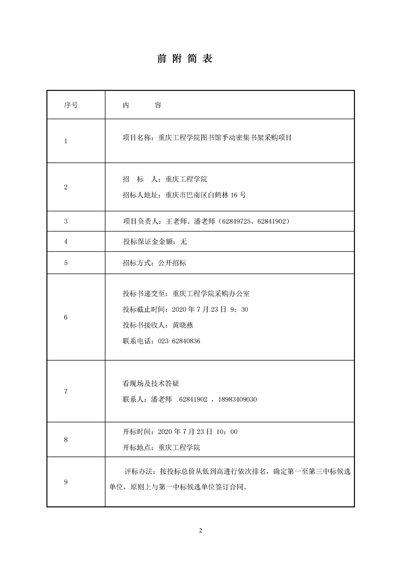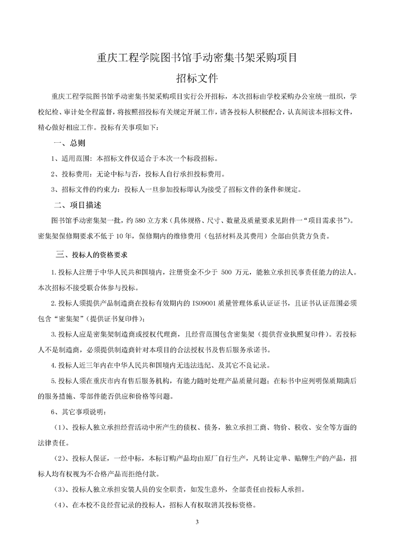 重庆工程学院手动密集书架招标公告