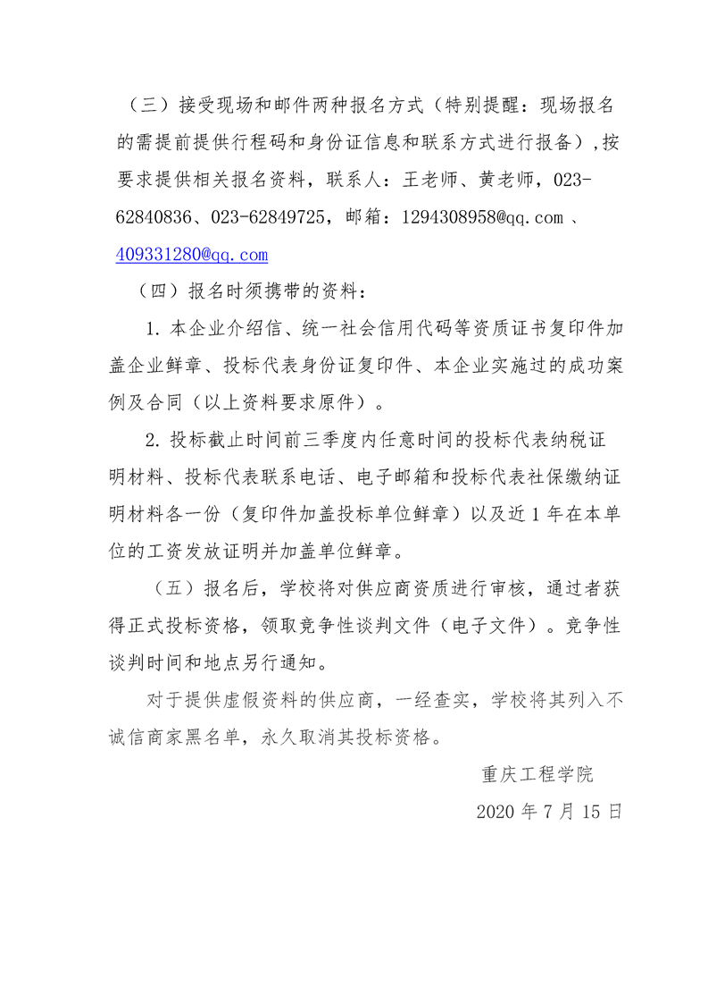 重庆工程学院智慧教室建设项目竞争性谈判公告