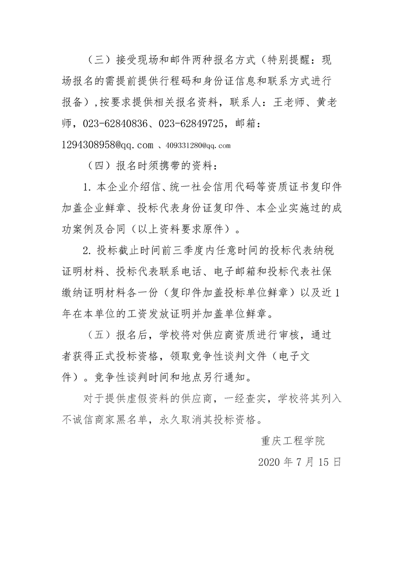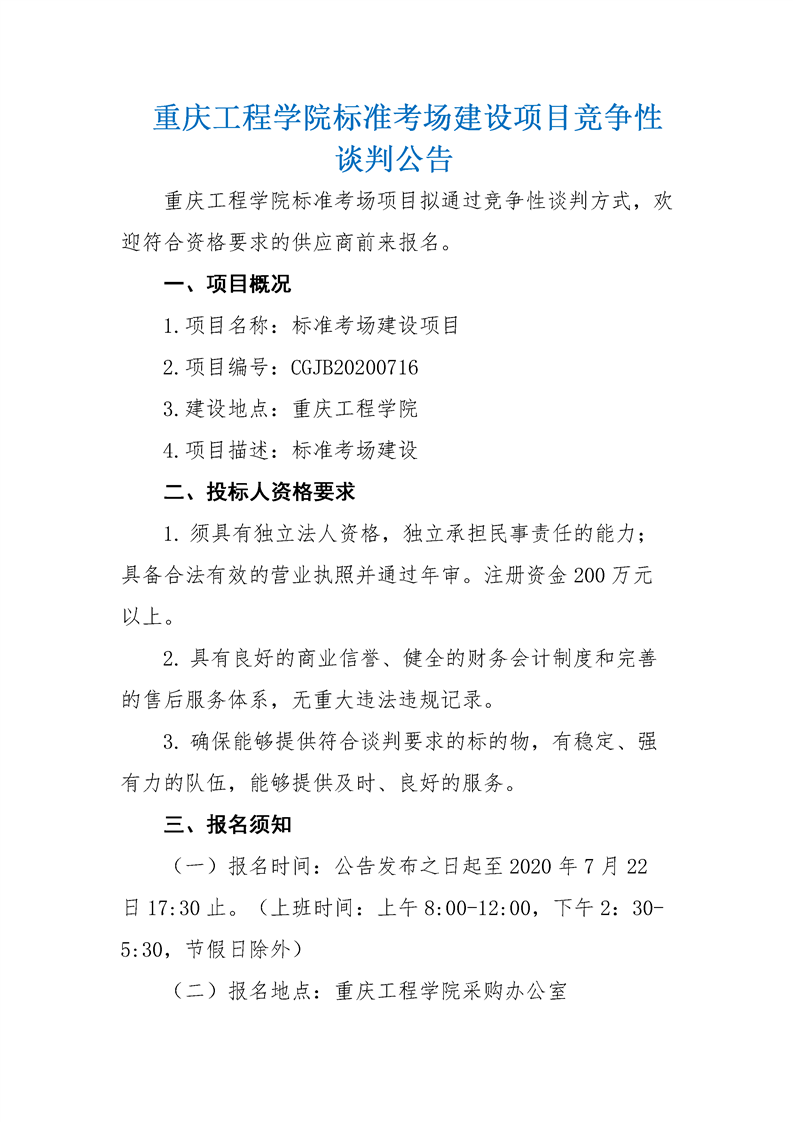 重庆工程学院标准考场建设项目竞争性谈判公告