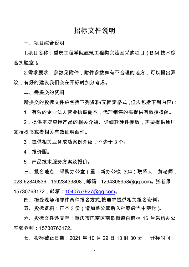 重庆工程学院建筑工程类BIM技术综合实验室项目竞争性谈判公告