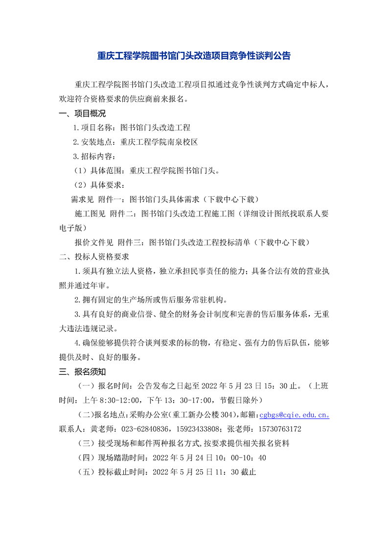 图书馆门头改造项目竞争性谈判公告