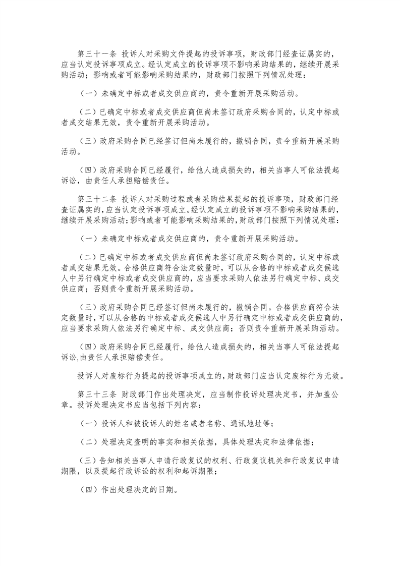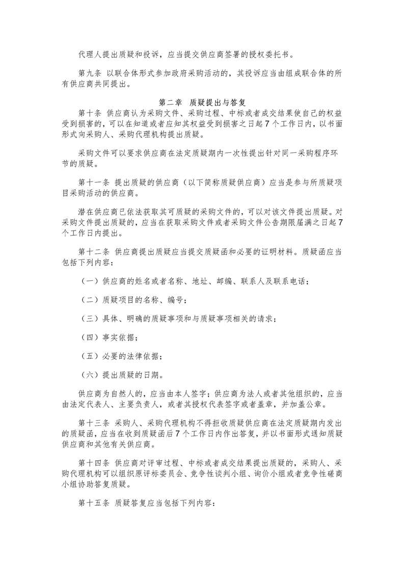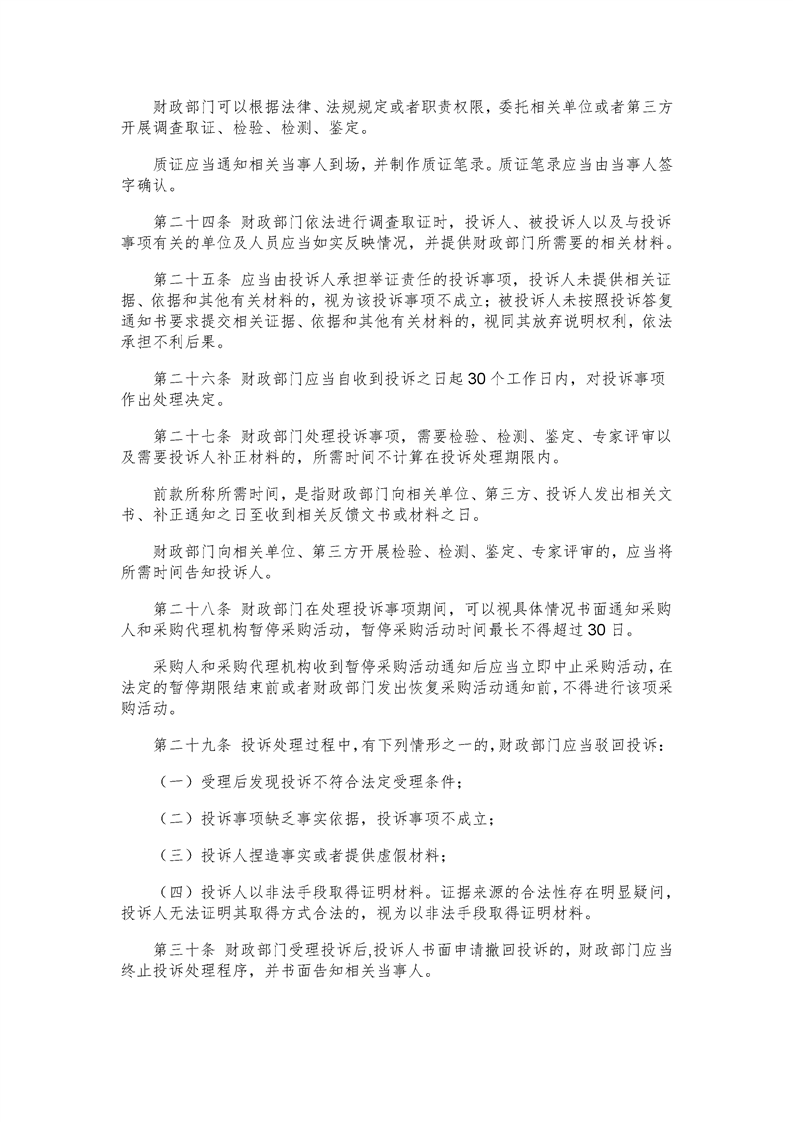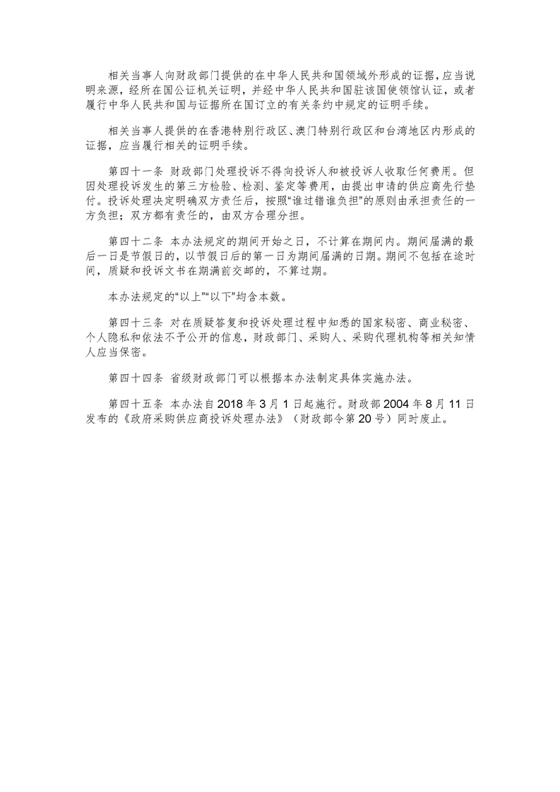 中华人民共和国财政部令第94号《政府采购质疑和投诉办法》