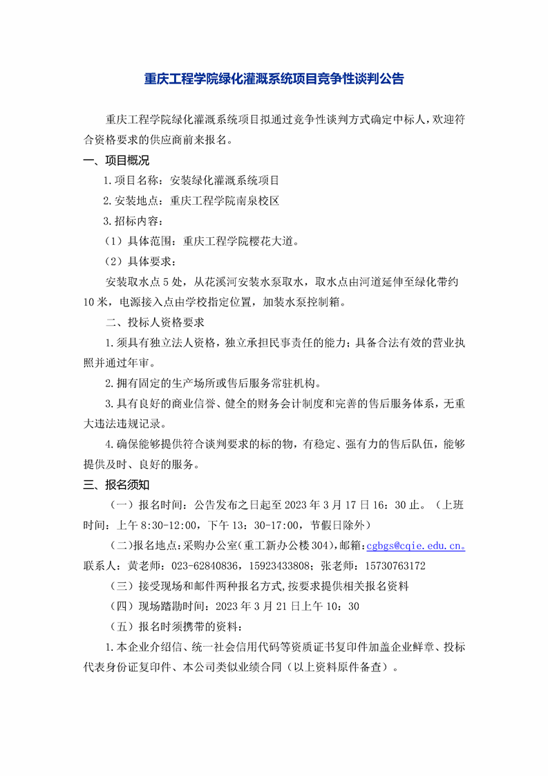 绿化灌溉系统项目竞争性谈判公告