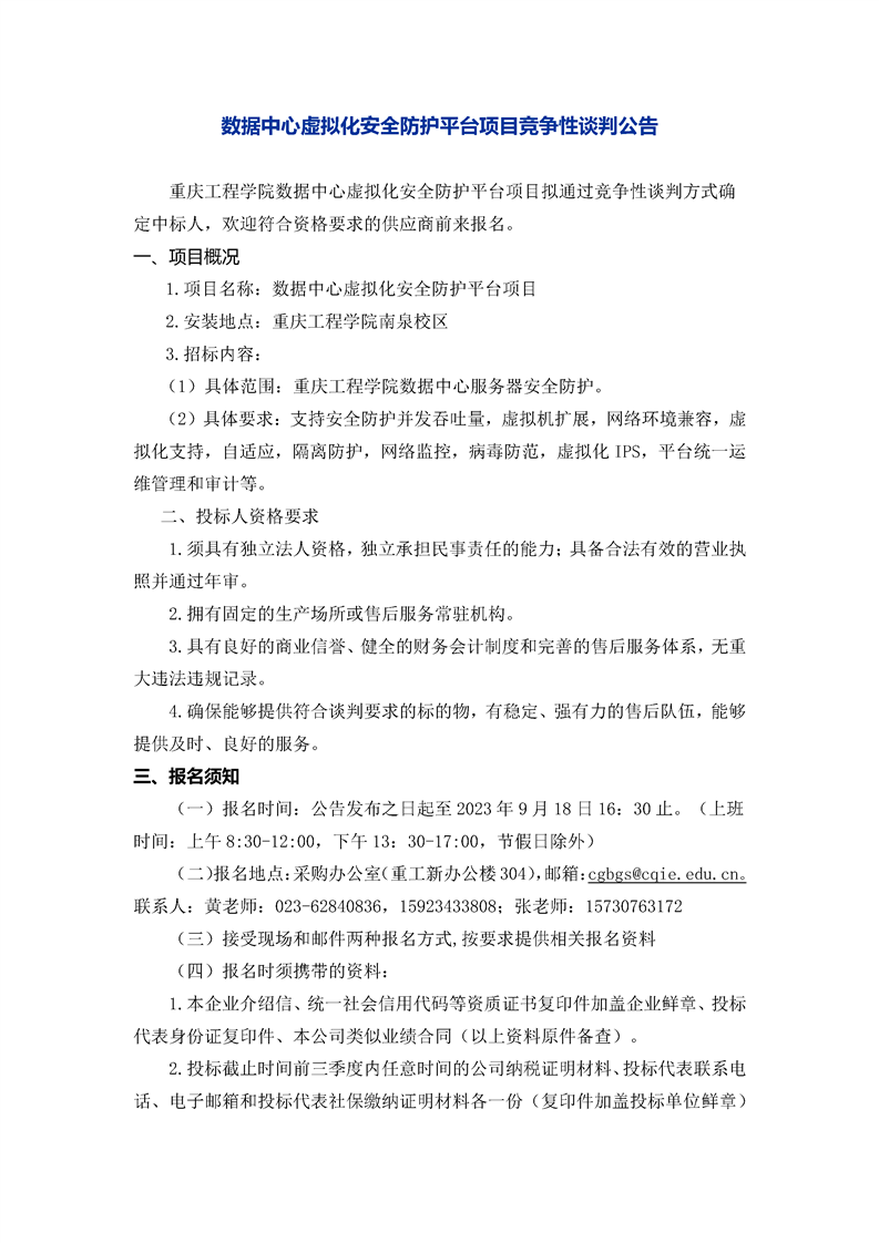 数据中心虚拟化安全防护平台项目竞争性谈判公告