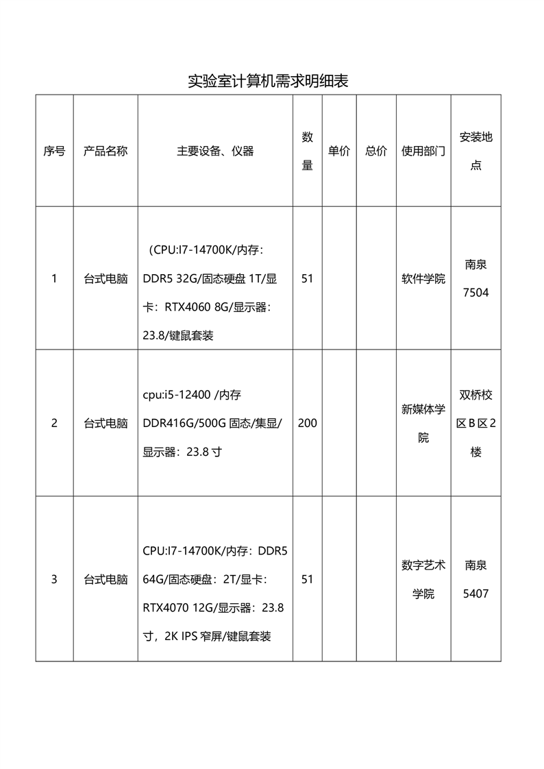 重庆工程学院实验室计算机采购项目竞争性磋商公告
