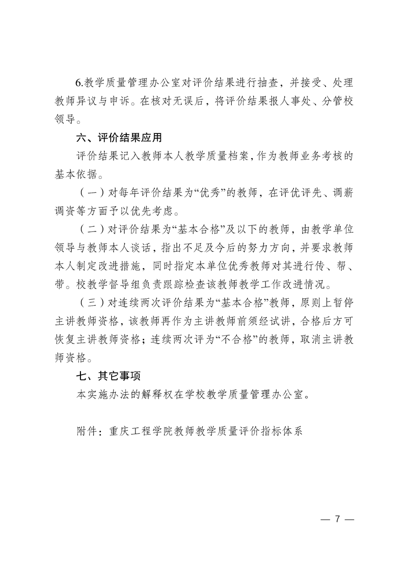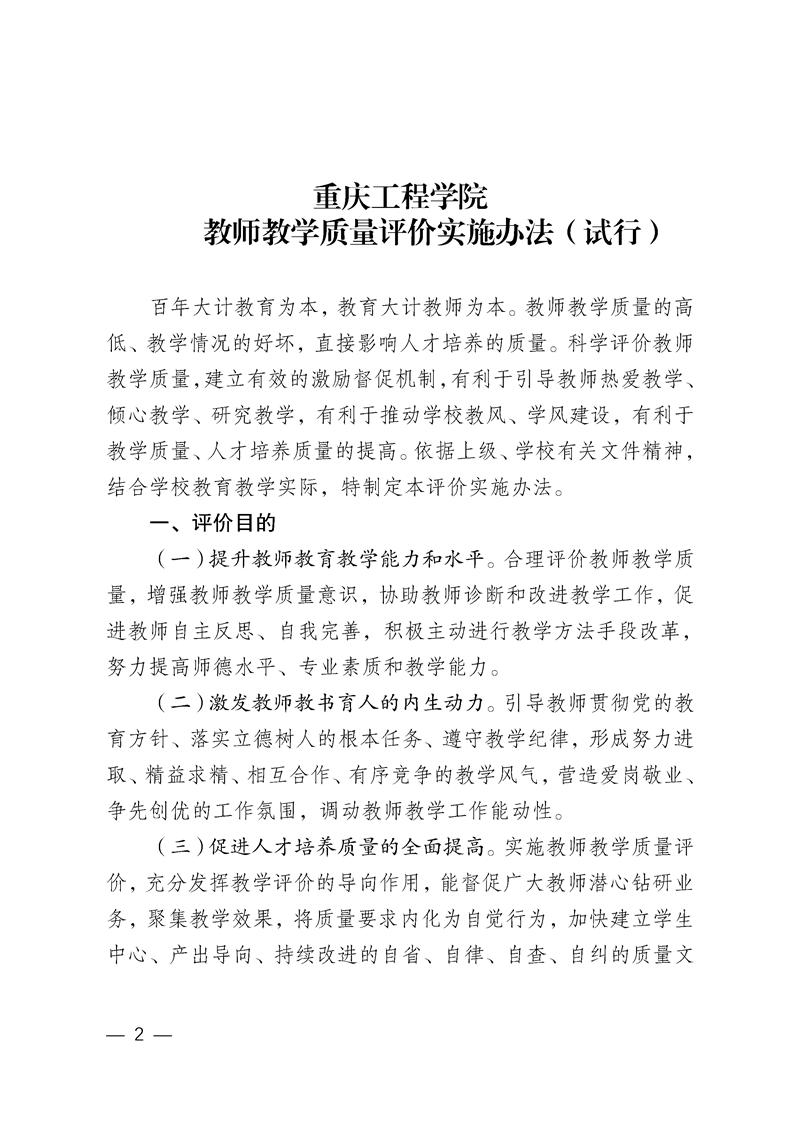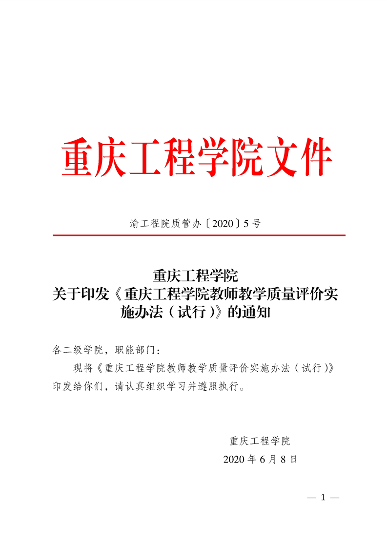关于印发《重庆工程学院教师教学质量评价实施办法(试行)》的通知
