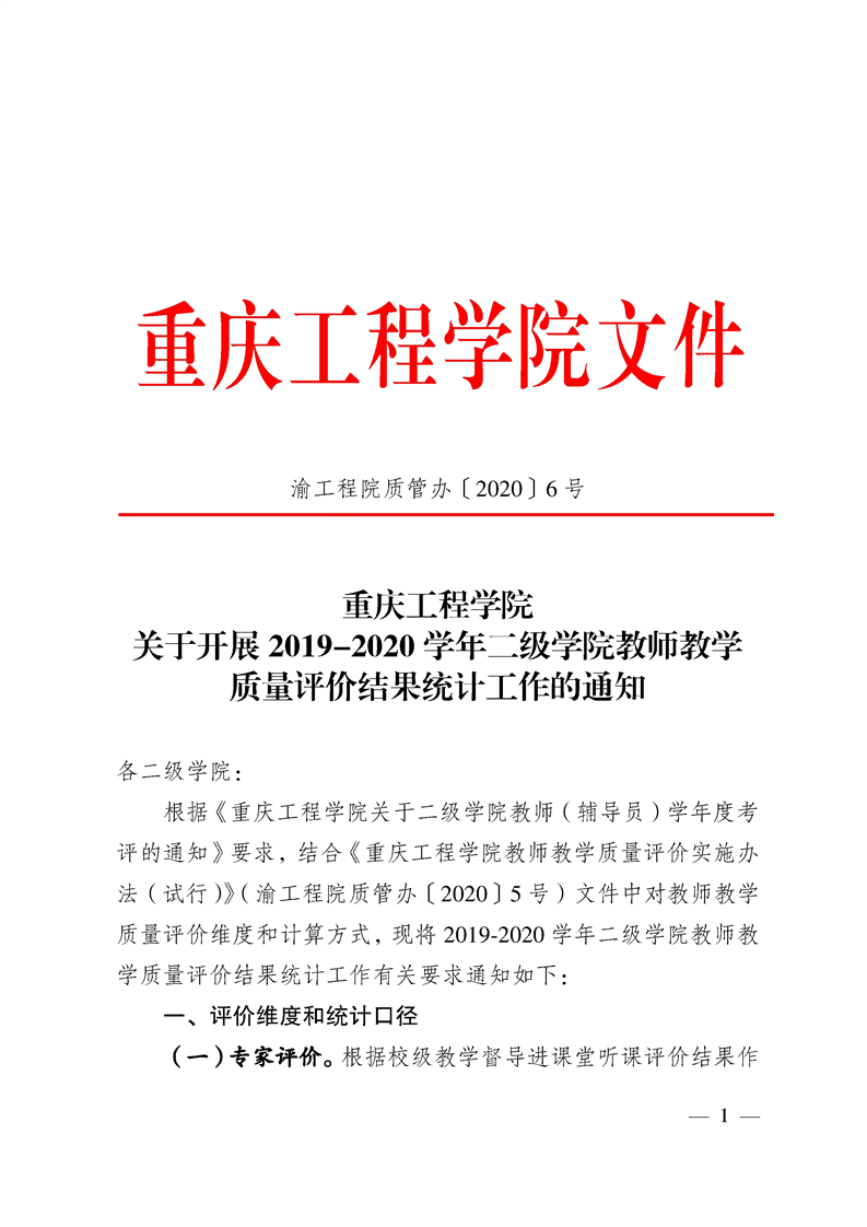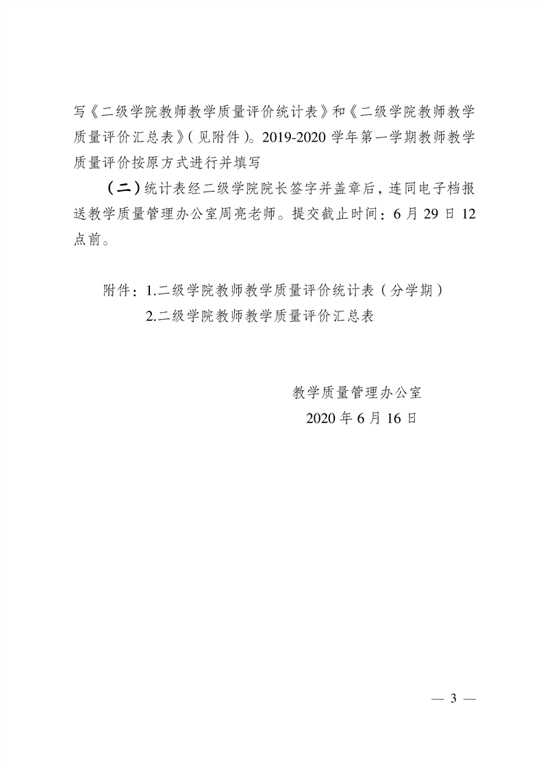 关于开展2019-2020学年二级学院教师教学质量评价结果统计工作的通知
