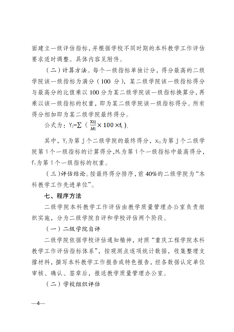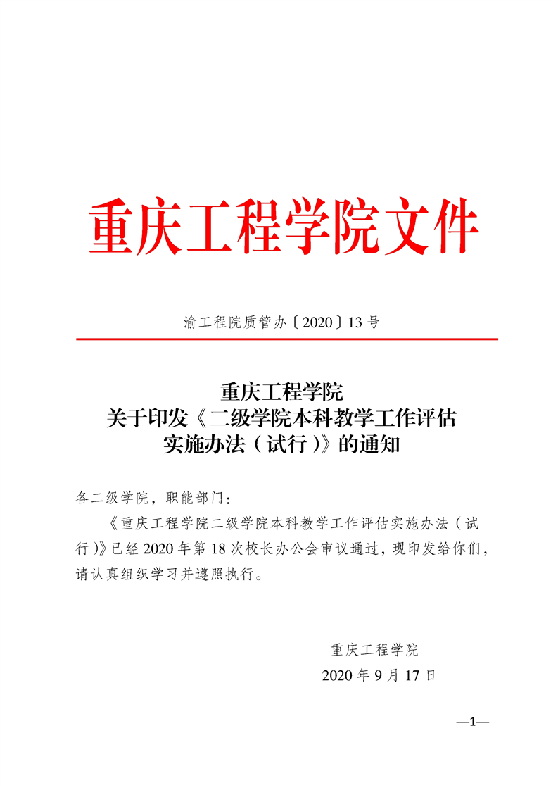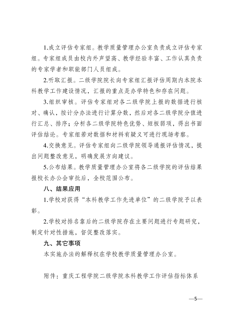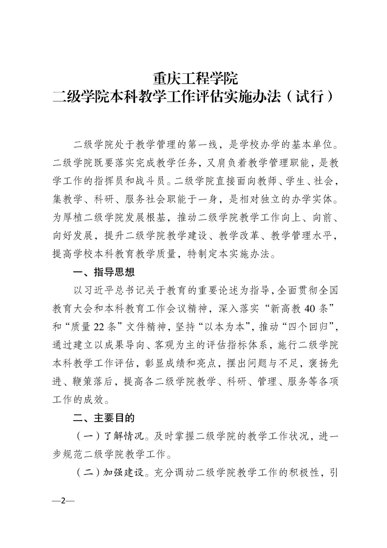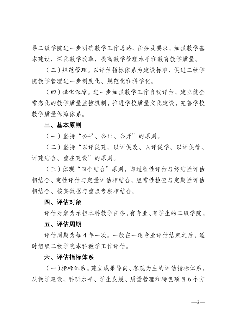 关于印发《二级学院本科教学工作评估实施办法(试行)》的通知