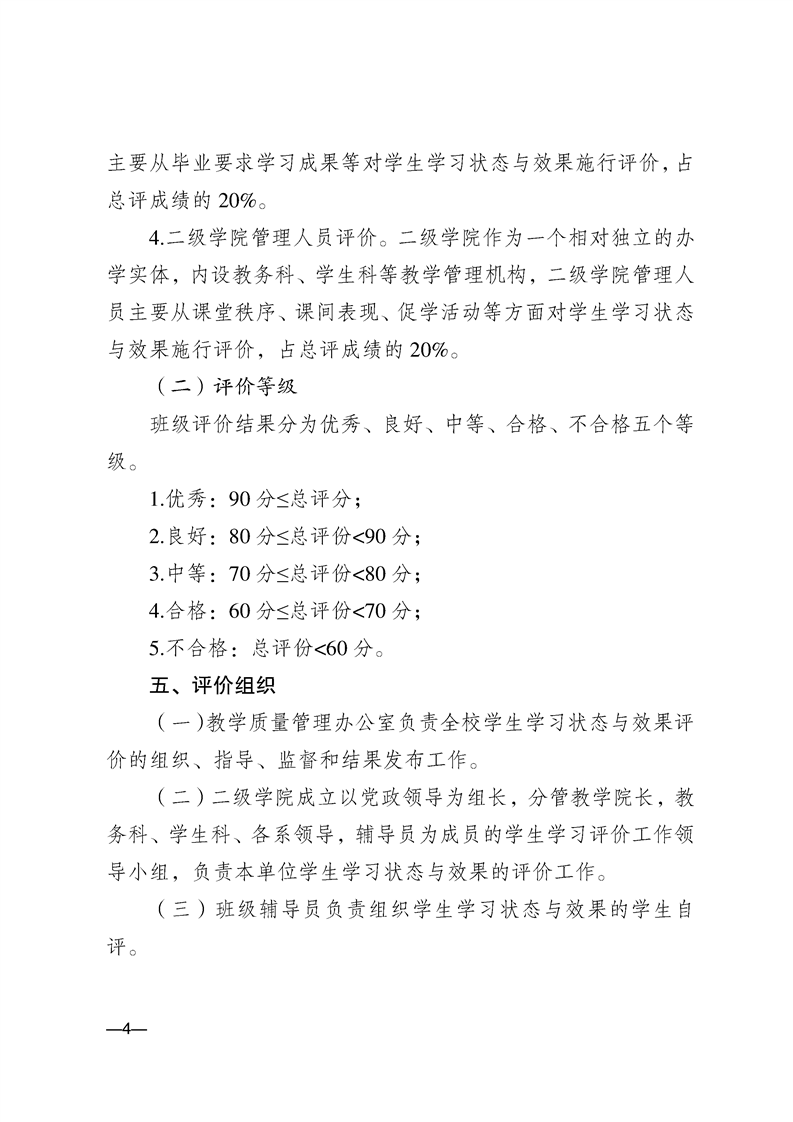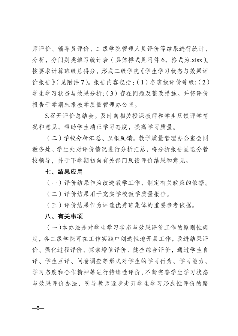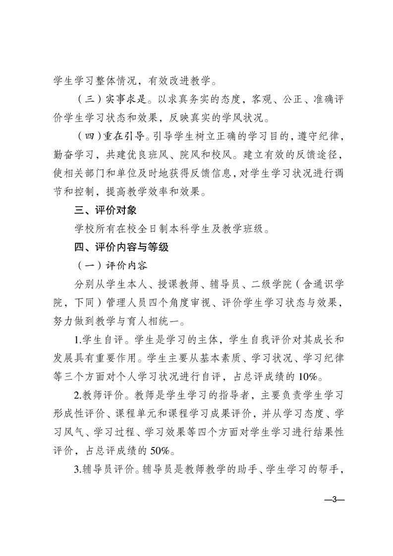 关于印发《本科生学习状态与效果评价办法(试行)》的通知
