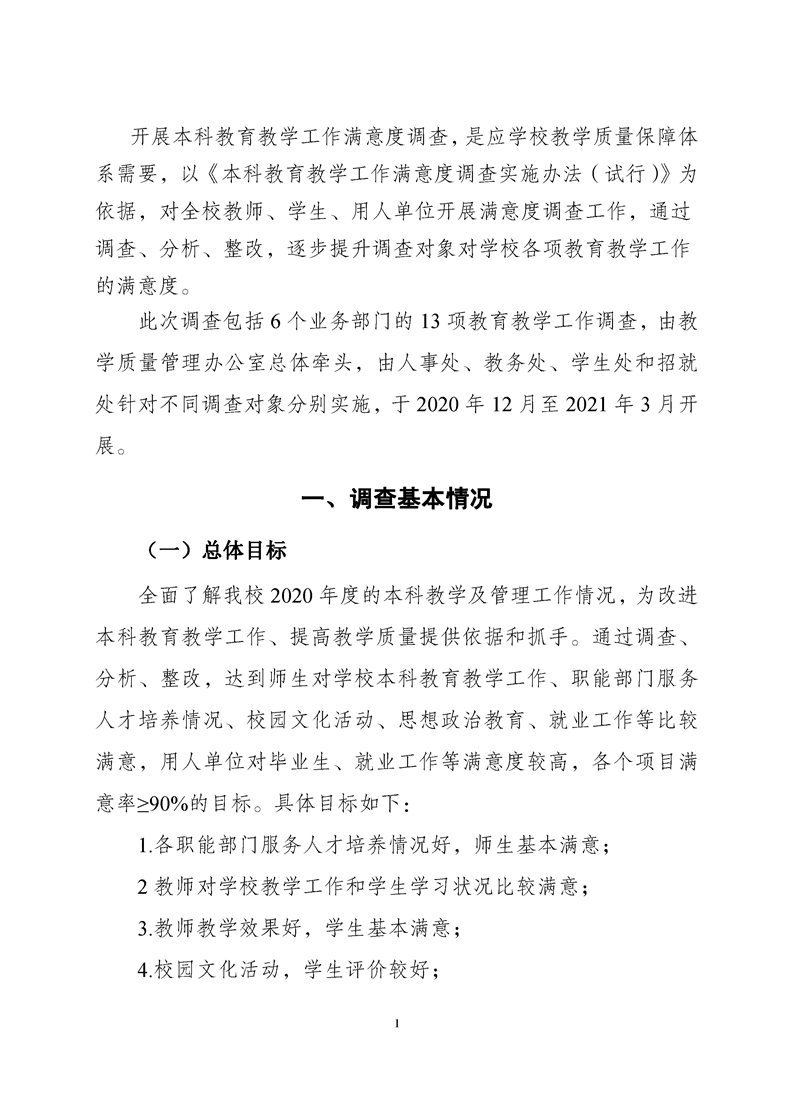 重庆工程学院本科教育教学工作满意度调查报告2020年