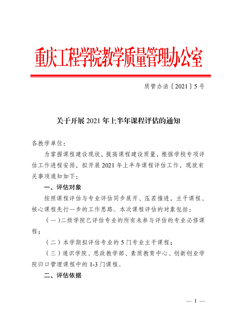 关于开展2021年上半年课程评估通知