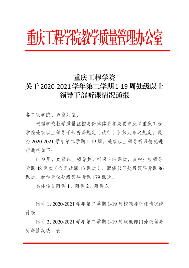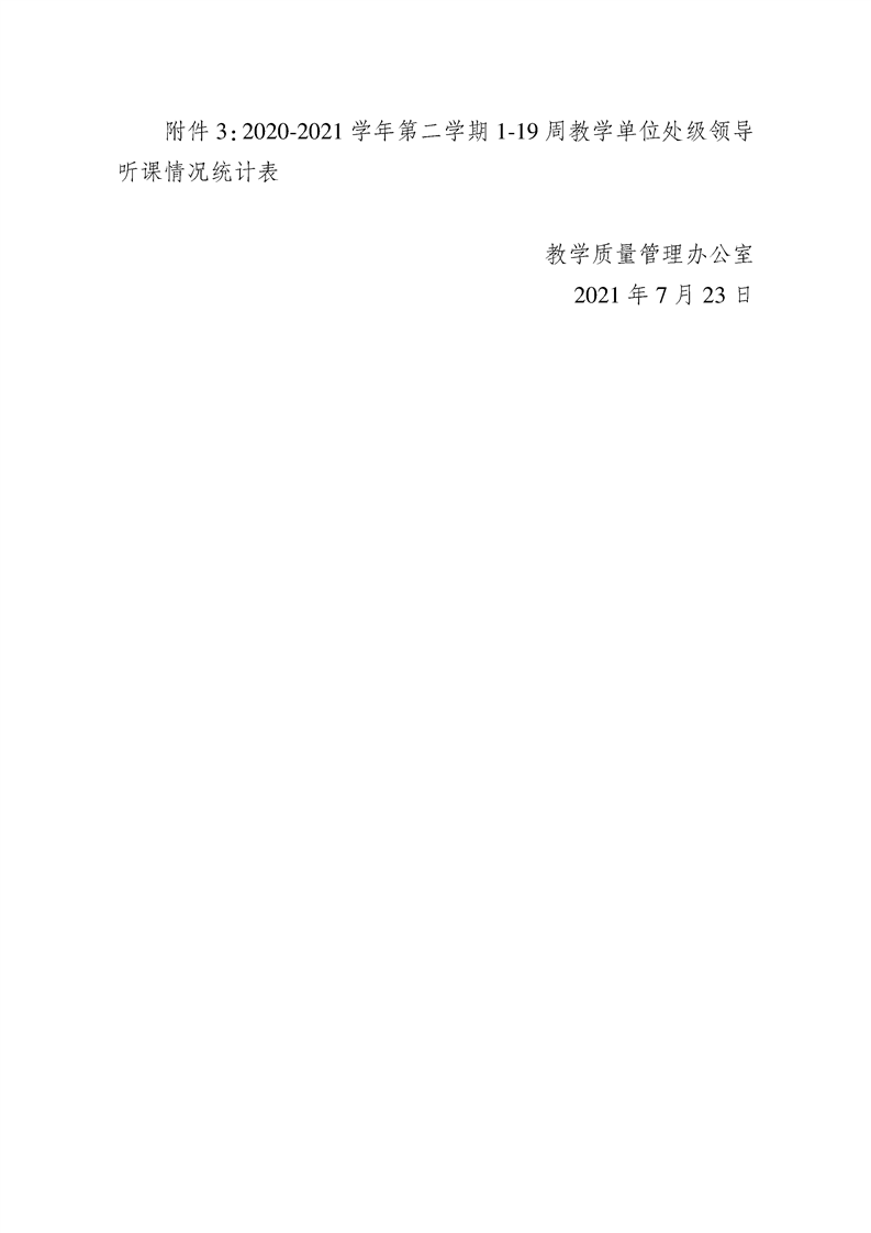 关于《2020-2021学年第二学期截止1-19周中干及以上领导听课情况》通报