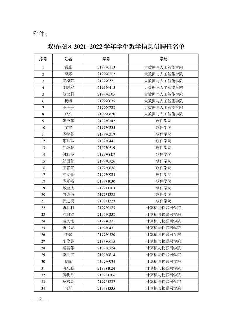 关于聘任双桥校区 2021-2022 学年 学生教学信息员的通知