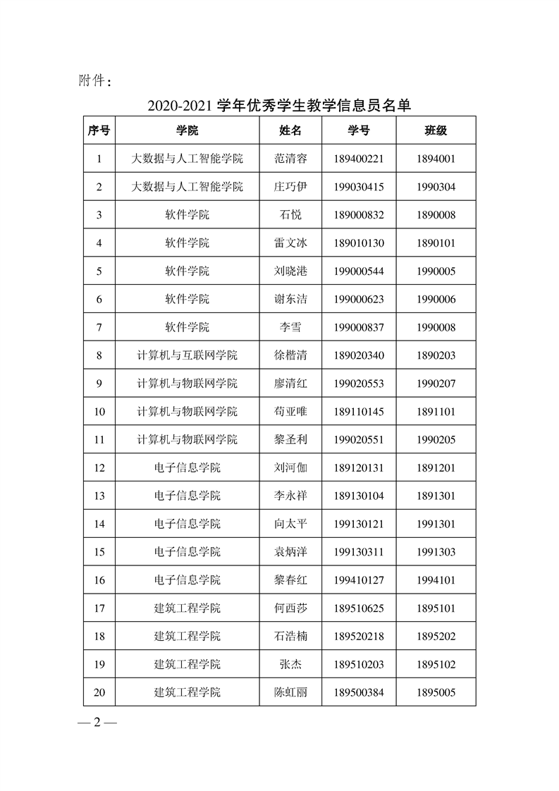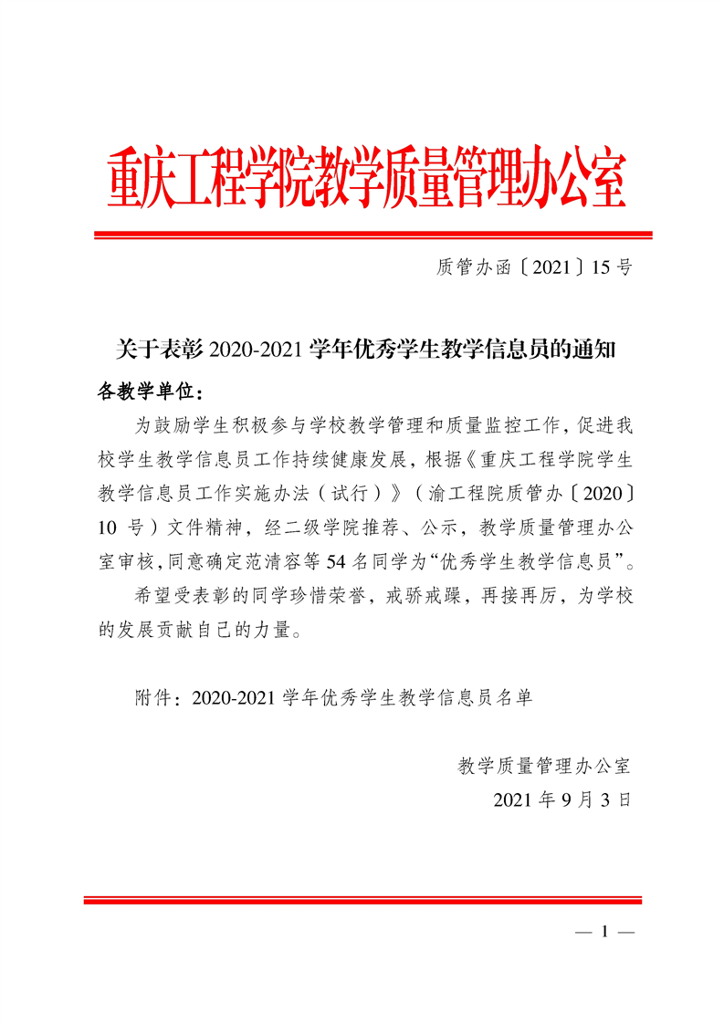 关于表彰2020-2021学年优秀学生教学信息员的通知
