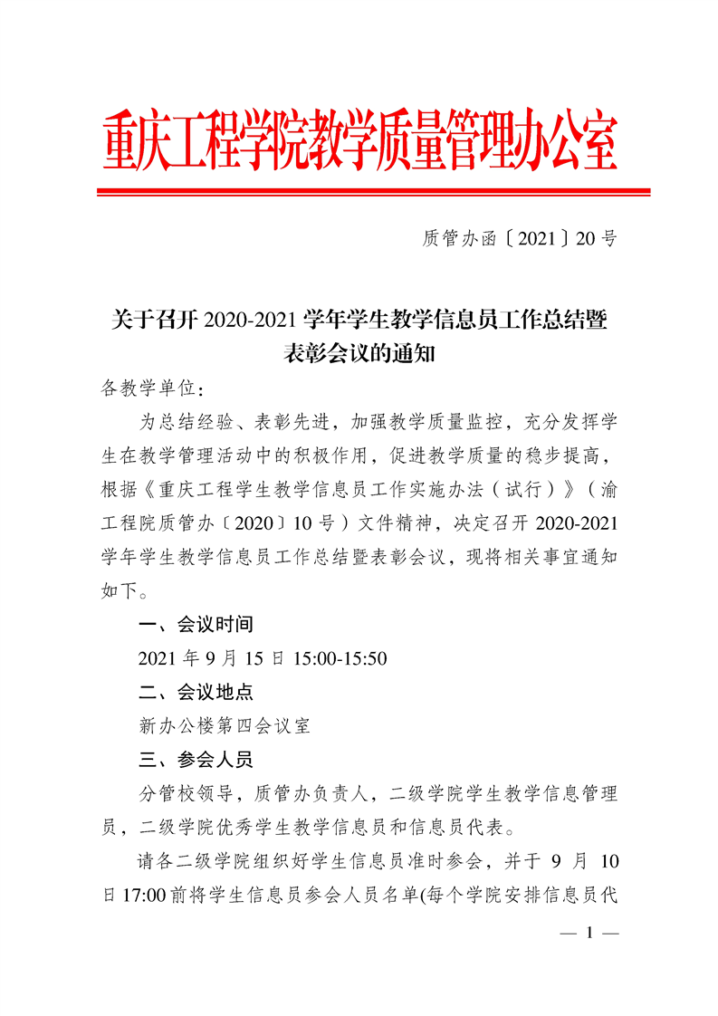 关于召开2020-2021学年优秀学生信息员总结暨表彰会议的通知