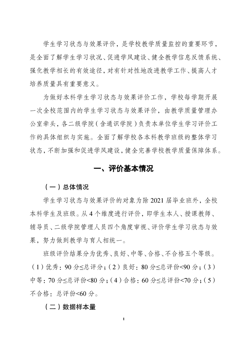 2020-2021学年第二学期本科学生学习状态与效果评价报告