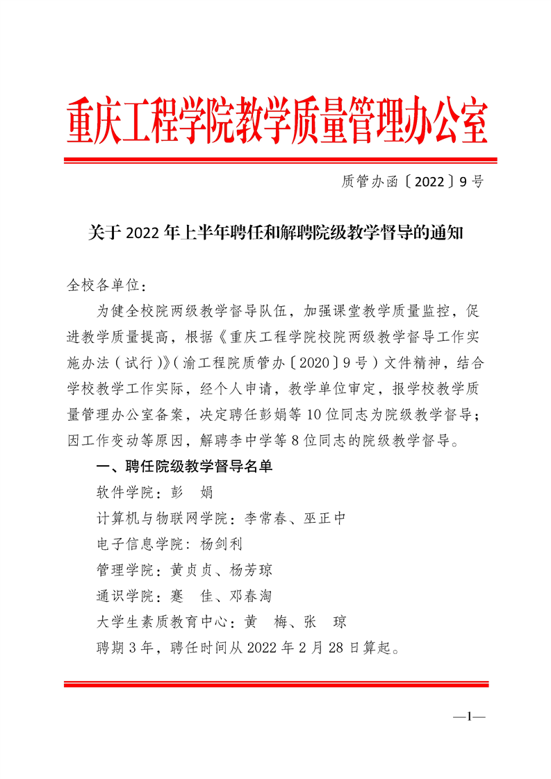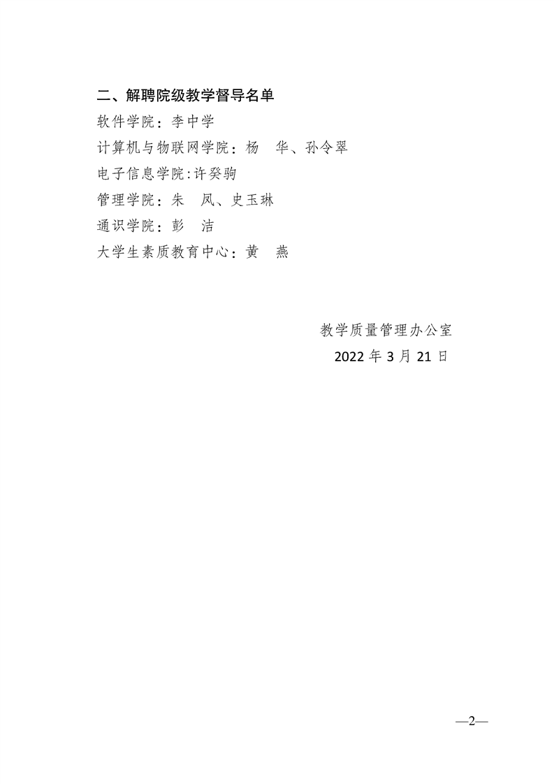 关于2022年上半年聘任和解聘院级教学督导的通知