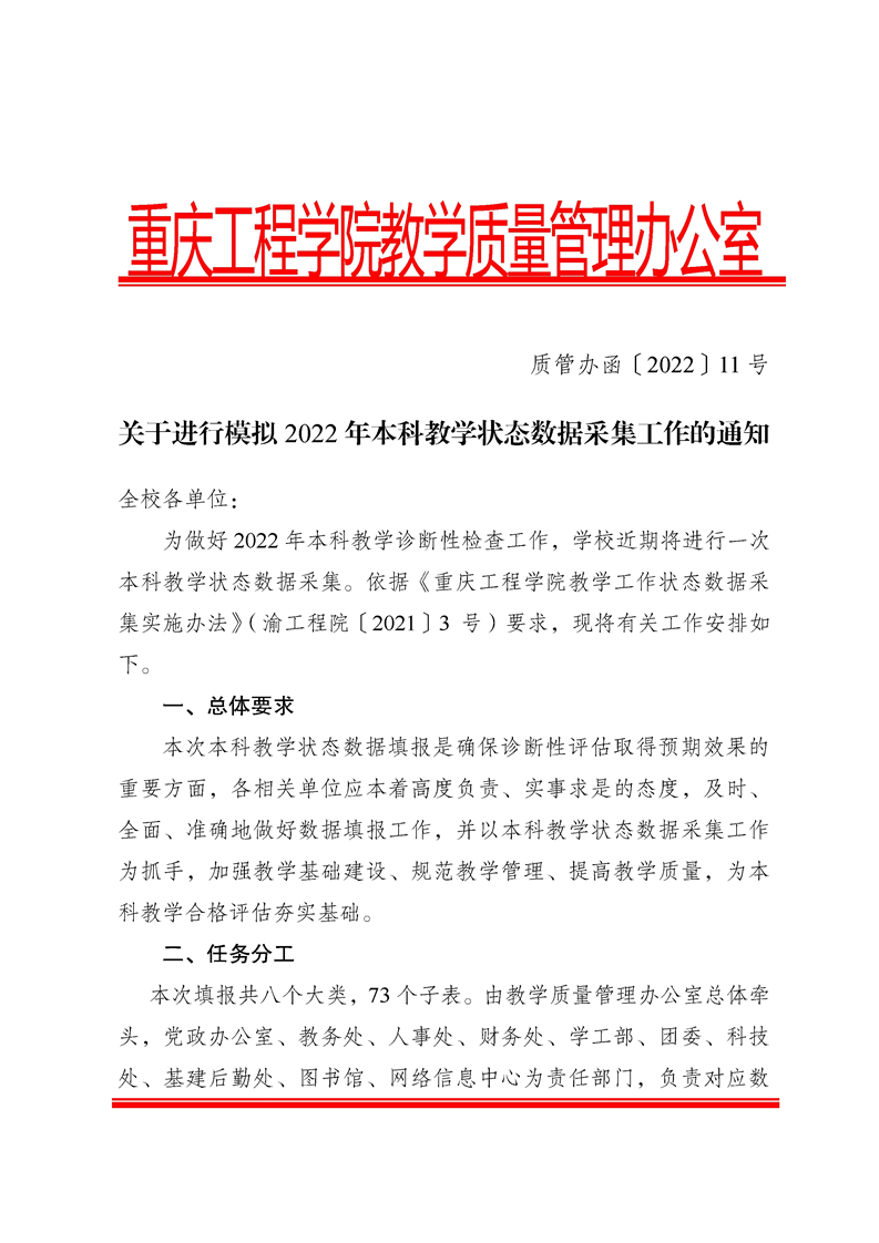 关于开展模拟2022年本科教学状态数据采集工作的通知