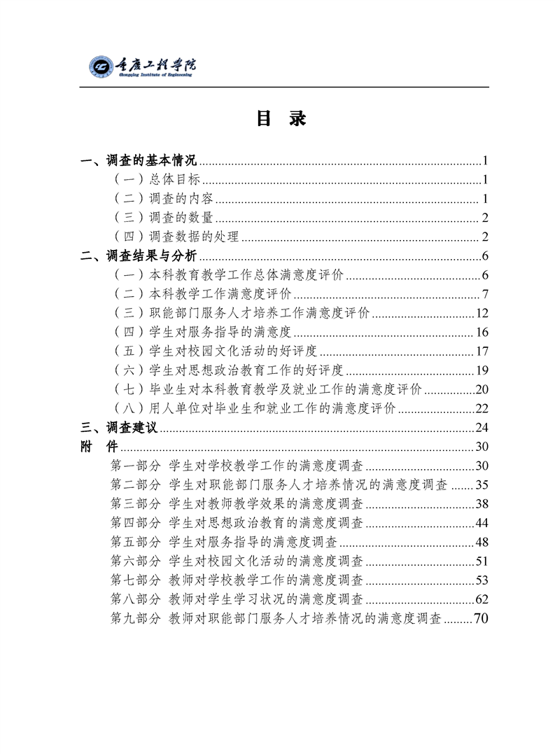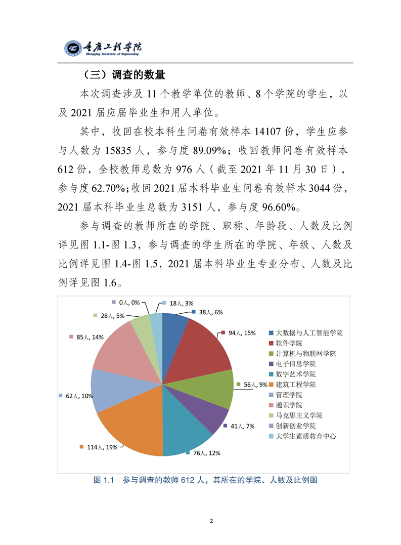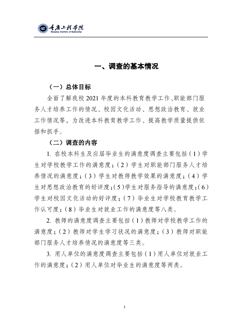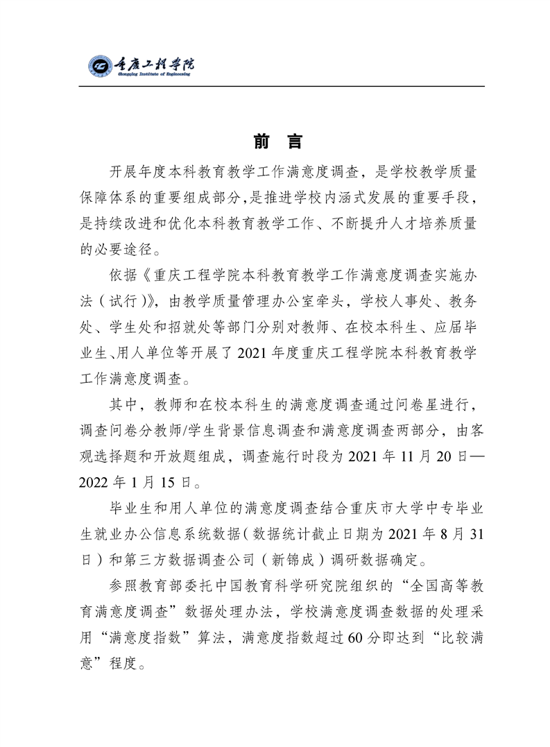 重庆工程学院本科教育教学工作满意度调查报告(2021年度)