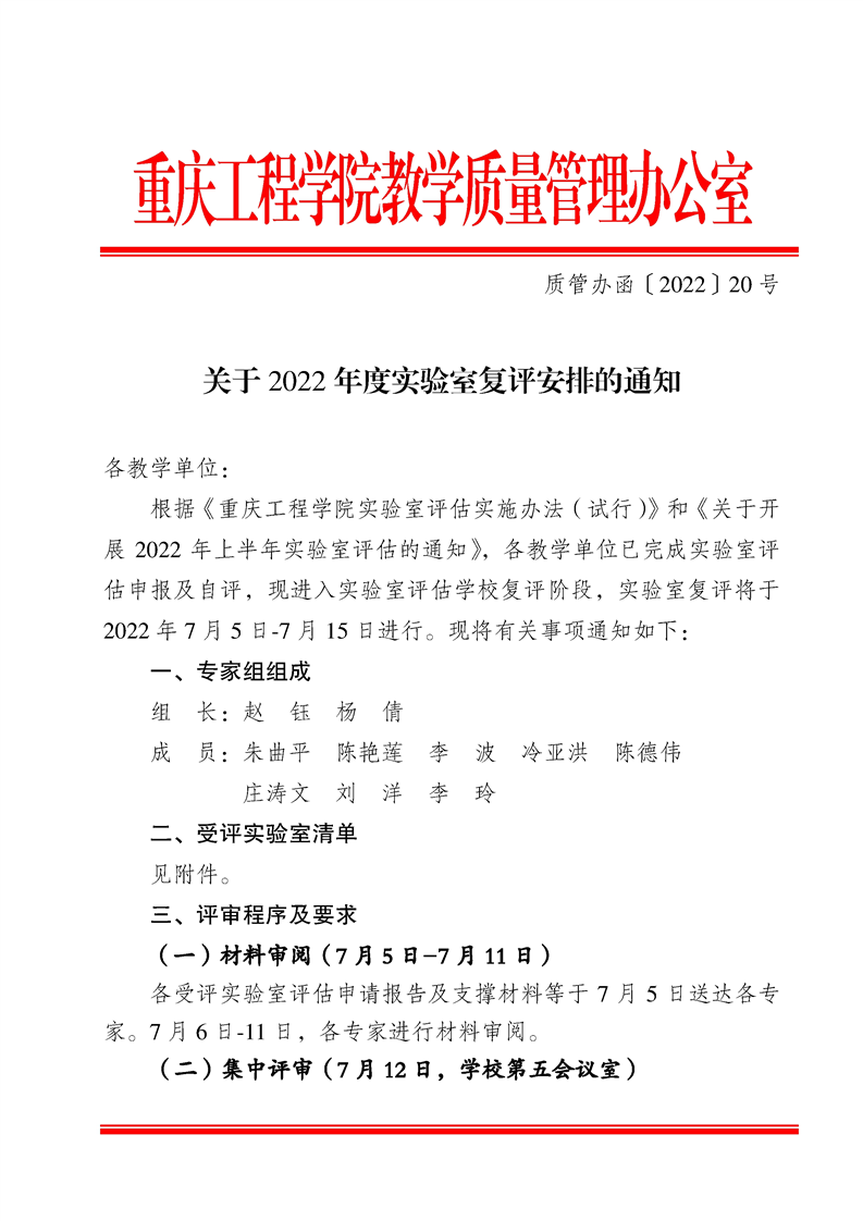关于2022年度实验室复评安排的通知