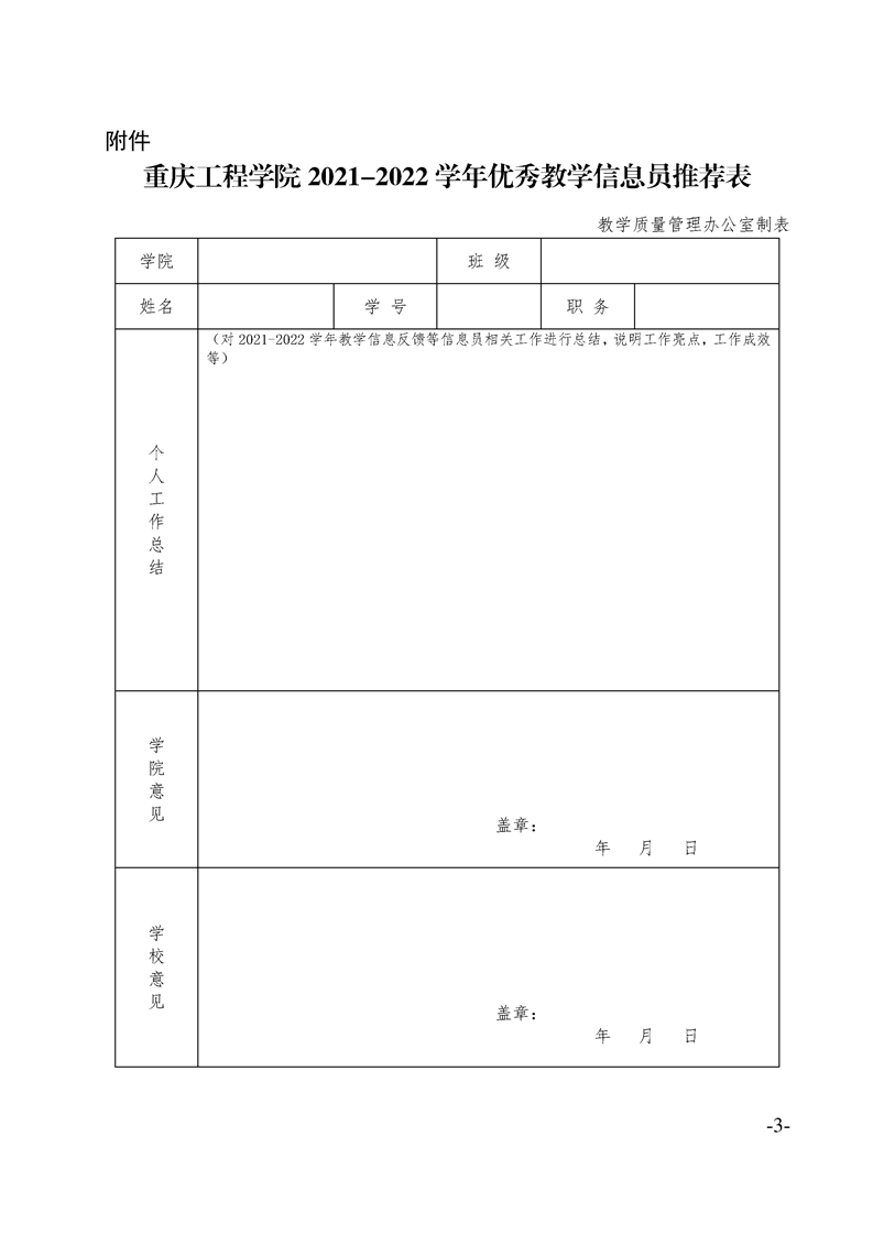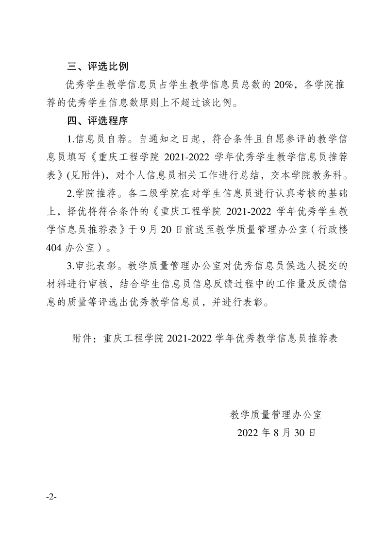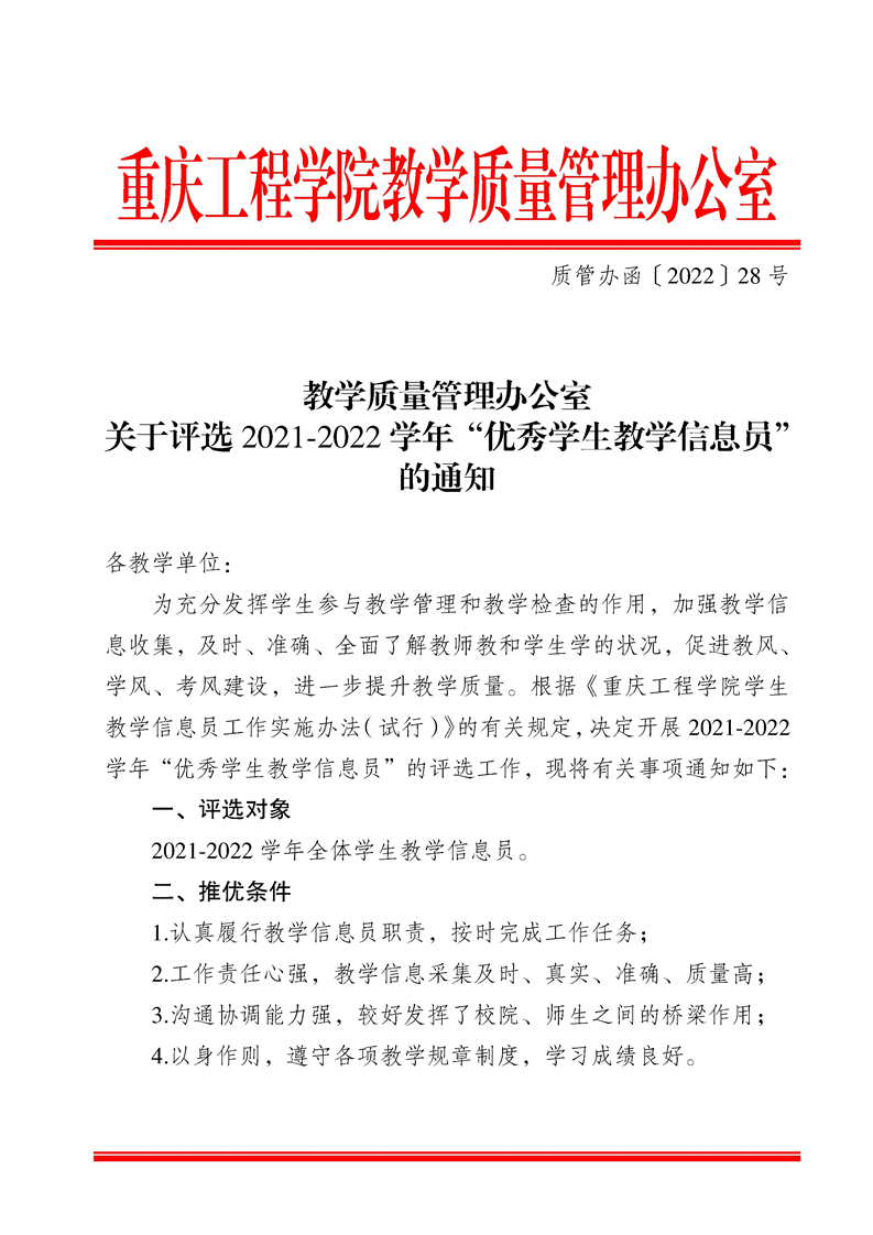 关于评选2021-2022学年“优秀学生教学信息员”的通知