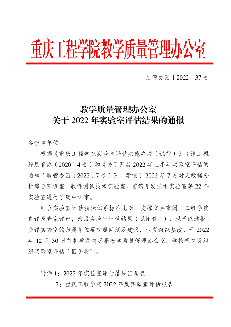 关于2022年实验室评估结果的通报