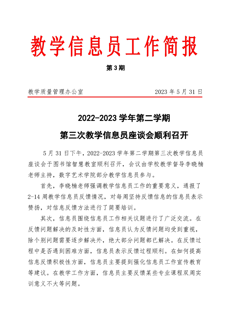 教学信息员工作简报(第三期)