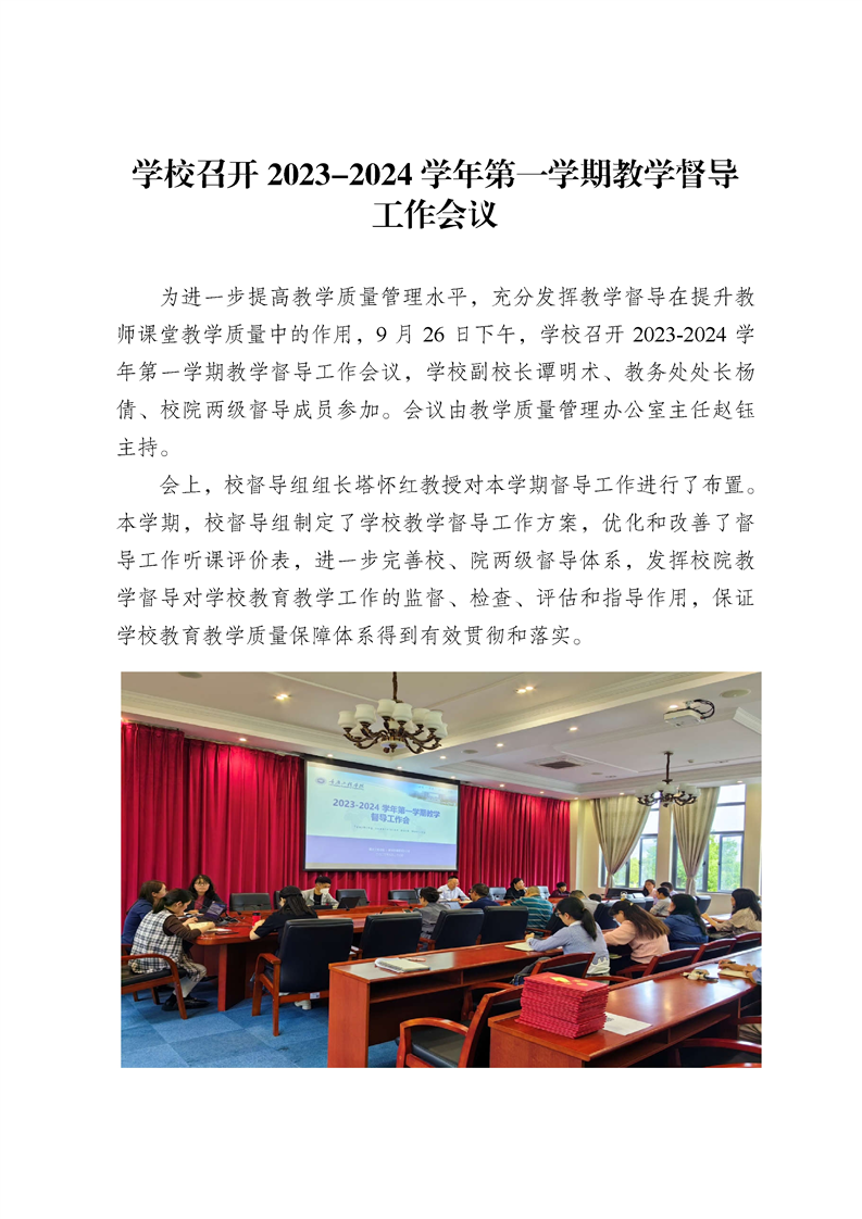 学校召开2023-2024学年第一学期教学督导工作会议