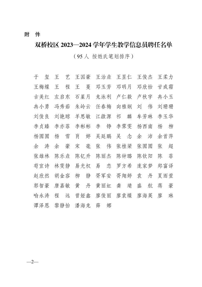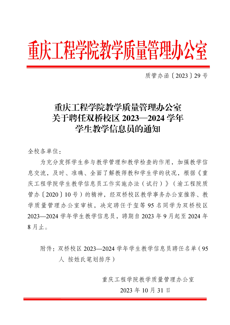 关于聘任双桥校区2023—2024学年学生教学信息员的通知