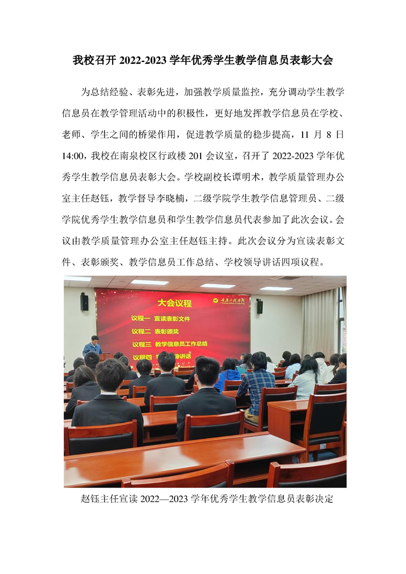 我校召开2022-2023学年优秀学生教学信息员表彰大会