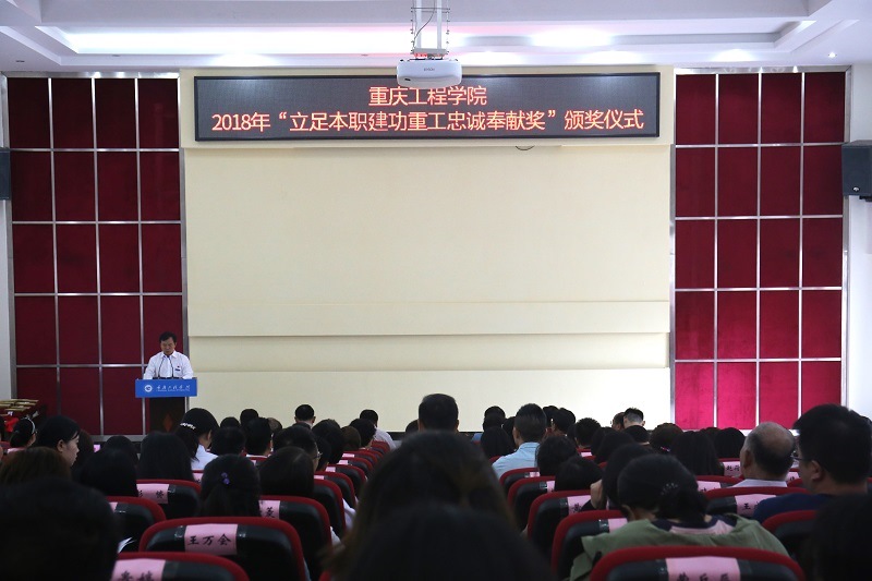 为进一步激发全校教职工扎根重工、热爱重工、建设重工的使命感和主人翁责任感,9月28日下午,学校在行政楼阶梯报告厅,举办2018年“立足本职建功重工忠诚奉献奖”颁奖仪式,表彰学校在岗届满4年、8年、12年、16年的教职工,褒奖他们对本职工作的坚守,对学校建设的奉献,对教育事业的忠诚。