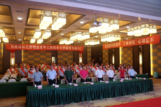 为进一步激发全校教职工扎根重工、热爱重工、建设重工的使命感和主人翁责任感,2019年7月6日—7月7日,学校在南川金佛山景区天星两江假日酒店举行了2019年立足本职建功重工“忠诚奉献奖”系列表彰活动,表彰学校在岗届满4年、8年、12年、16年的教职工,褒奖他们对本职工作的坚守,对学校建设的奉献,对教育事业的忠诚。