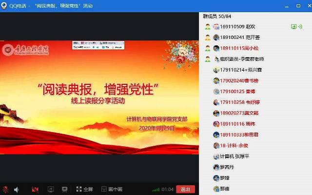 此次线上活动分为两个部分,活动一开展党员示范性学习之“党员有话说”,以小组的方式通过视频的形式为大家分享,讲诉自己在疫情期间所见党员先锋的光荣事迹,国家有难,党员在前。在他们身上散发着光芒,展现一个民族的凝聚力,一个大国的担当。活动二开展“党性分子读报感悟”心得分享,信息渠道来源重庆日报、中国教育报、光明日报、人民日报。报纸作为最早的信息媒介,尽管现在已被无纸化阅读慢慢取代,但它的时代价值不可替代。计算机学院党性分子重拾典报,在群内有序分享,发表自己的读报经验与感悟。全体党性分子积极参与共同讨论国家、社会、人文等时事政治,充分展现了我院人才济济,爱国热情高涨。活动结束后将由学生党支部书记韩老师与学生党支部组织委员李老师共同筛选优秀的内容在微信公众号开设专栏分享。