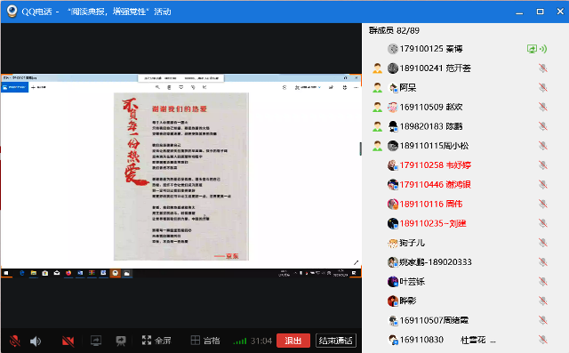 为进一步推进学习型党支部建设,激发我院党员同志和各个发展阶段同志的相互激励相互学习教育的学习热情,我院学生党支部于2020年5月29日14:00通过网络分享的方式进行“阅读典报、增强党性”的党日活动。活动期间,在党小组提前学习交流的基础上选出代表进行了视频在线分享,同时各个阶段的同志们也分享了读报、关注国家大事带给自己的成长,大家都表达了自己对各报刊上国家、社会新闻的积极正能量的看法。活动最后,由学生党支部组织委员李雯君同志进行总结发言,呼吁大家多看报、多交流,提高自身的思想觉悟,为国家发展,贡献自己的一份力量。
