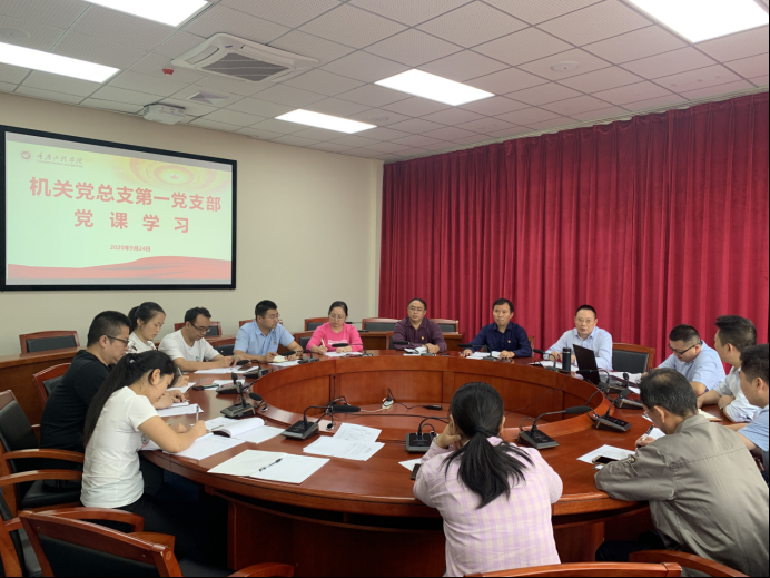 2020年9月24日下午,机关党总支第一党支部在第三会议室召开了党员大会大会党课学习,会议由支部书记姜庆洲主持召开,机关党总支第一党支部全体党员参加学习。