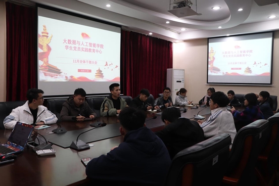 2020年11月30日20:00大数据与人工智能学院学生党员实践教育中心在学校第七会议室召开11月全体中心干部大会,参加此次会议有学院学生党员实践教育中心全体中心干部。