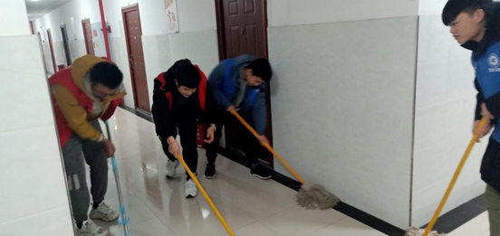 由周芯作为代表宣读倡议书后,全体成员以小组为单位走进和园一号、和园二号,清理周边绿化带内白色垃圾、杂草,帮助宿管老师清扫值班室、学生党员工作站办公室等公共区域,检查公寓楼道内是否摆放杂物阻碍通道。活动期间大家积极参与,在寒风中发扬不怕苦、不怕累、不怕脏的精神,为打造美丽寝室环境献出自己的一份力。