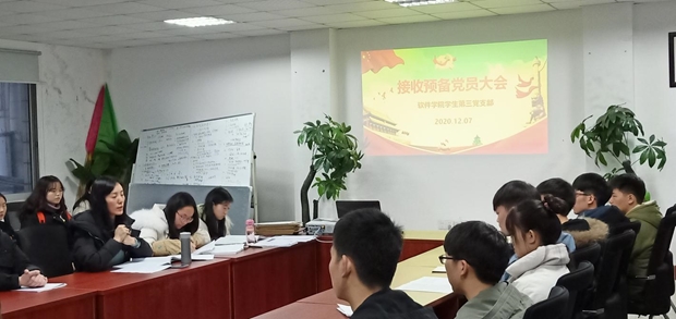 为响应党的号召,培养优秀党员,为党支部注入新鲜血液,2020年12月7日16:00,软件学院学生第三党支部召开接收预备党员大会,讨论李国鹏、何柯、韦朦、周锐豪、周杰的发展问题。