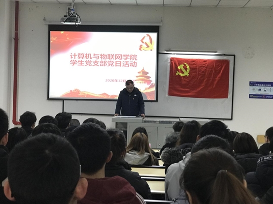 2020年12月12日12时30分,计算机与物联网学院党总支在6201教室举行了“勿忘国耻,爱我中华”国家公祭日主题党日活动。重庆工程学院校党委委员桂国庆校长莅临本次活动,计算机与物联网学院党总支书记覃华伟、党总支组织员潘晓宇、学生第一党支部书记黄浩茹、学生第一党支部组织委员韩梦杰、学生第二党支部书记梁益建、学生第二党支部组织委员郑阳春,以及120名党性分子参加了本次主题党日活动。