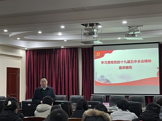 本次党课由校党委书记谭明术同志和部分党性分子参与。课上,谭书记结合十九届五中全会精神向同志们讲述了十九届五中全会的基本情况,并从中华民族伟大复兴的历史进程中,全面把握新发展阶段的新机遇、新挑战。